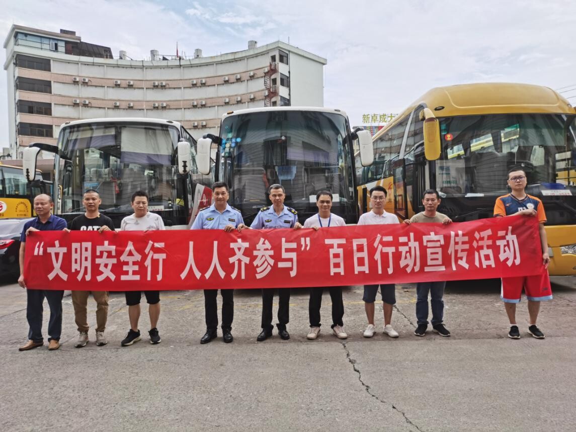 近日,为了强化源头安全隐患管控,排查辖区客运站场驾驶人、营运车辆交通安全隐患,拧紧客运站场安全生产运输这根弦,云安区交通运输局深入云浮市汽车运输集团有限公司云安分公司开展“文明安全行,人人齐参与”百日行动宣传活动。