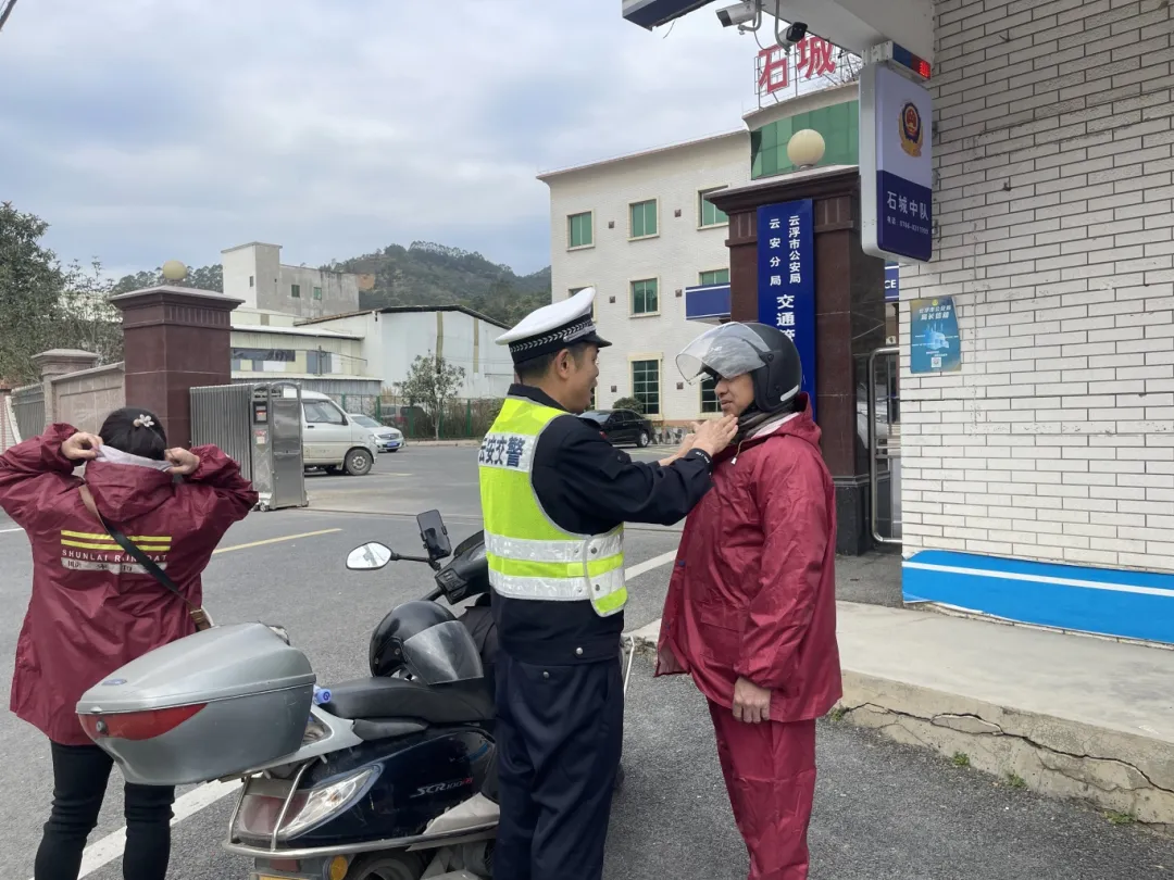 归途漫漫,暖意相随。春节是团圆的节日,也是道路交通最为繁忙的时刻,无数游子踏上归途,奔赴家人的怀抱。为全力保障道路交通安全有序,云安交管大队的民辅警们全员在岗在位,坚守在各个交通要道、路口卡点,疏堵保畅、巡查管控、服务群众。在324国道主干道,针对返乡摩托车较多的特点,民警们设立暖心服务站,为过路群众提供热水、应急维修工具、交通指引等服务,细心提醒驾乘人员佩戴好安全头盔,切勿疲劳驾驶、超速行驶。“过年回家路上慢一点,平安到家比什么都重要,有困难随时找我们!”交管大队民警陈伟平一边为返乡群众系好头盔,一边暖心叮嘱道。车流中的坚守,路口间的疏导,一句句贴心的提醒,一次次暖心的帮助,让奔波在归途上的人们感受到浓浓的警民温情,全力守护每一位游子平安归家,让团圆之路更顺畅、更温暖。
